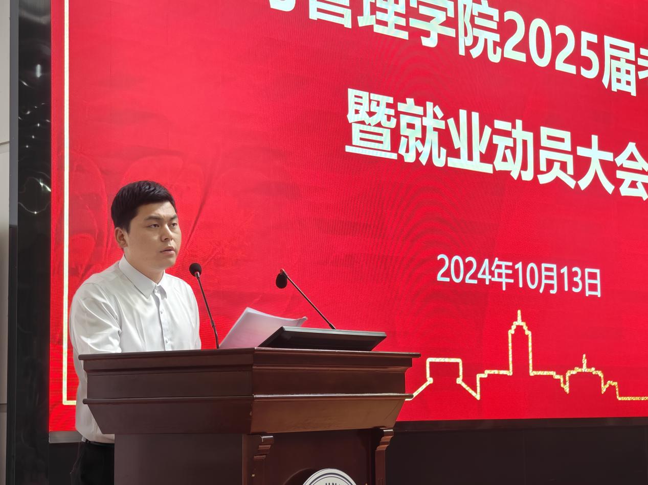 (通讯员 刘青沂 韩梦彦 徐子轩)为深入学习贯彻党的二十届三中全会精神,落实教育部关于高校毕业生就业工作部署,充分调动学生实习就业考研的积极性,10月13日晚七点,yl9193永利集团2025届考研誓师暨就业动员大会在12教405举行。三得利人才集团王雅诗总经理、yl9193永利集团副院长裴潇、党委副书记平先锋、21级辅导员李云妮、郭俊及21级全体本科生参加活动,本次大会由郭俊老师主持。