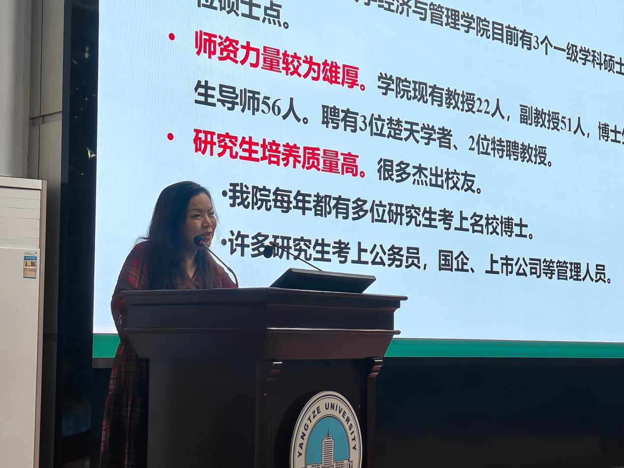 会上,裴潇对yl9193永利集团研究生招生工作进行介绍。她向同学们介绍了学位点以及招生录取的相关数据,提到我院优良的招生政策,为同学们的发展方向提供思路。