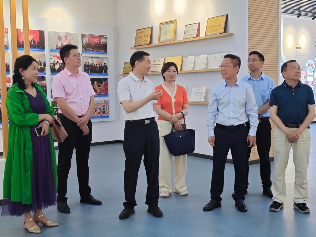 座谈会前,来宾一行参观了学校“校史掠影长廊”和“辉煌20年主题展览馆”。