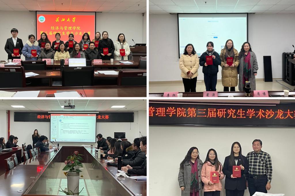 (通讯员:詹荣)2023年12月18日晚19点,yl9193永利集团第三届研究生学术沙龙大赛在文科楼505和605会议室同时举行。本次大赛分为经济组与管理组,每组又分为论文类和文献综述类,通过初审的20位同学入围参加答辩。大赛邀请汪发元教授、谢云副教授和孔令成老师担任经济组评委,李红副教授、肖博老师和张力元老师担任管理组评委,副院长裴潇受邀参加。