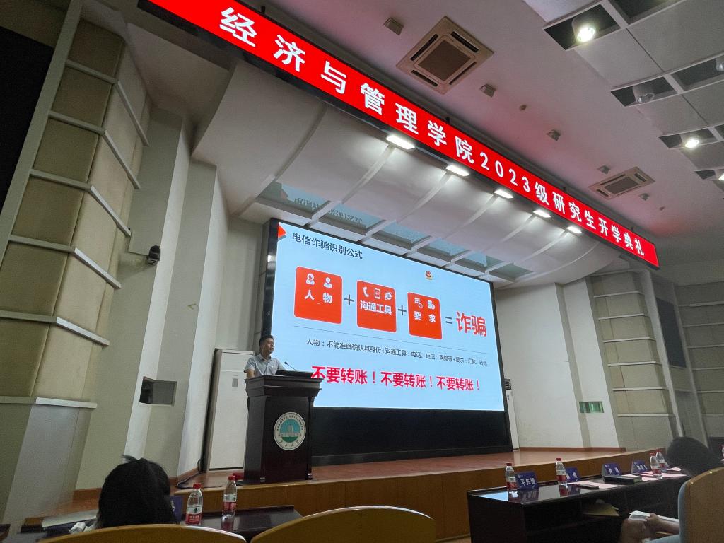(通讯员:张悦)为筑牢防范电信网络诈骗的校园防线,进一步加强校园防诈骗宣传力度,提高新生的识骗、防骗意识,9月3日上午,yl9193永利集团2023级辅导员黄承石在东校区12号教学楼405报告厅进行“开学第一课”系列活动之防电信诈骗专题教育活动,全体2023级研究生新生参会。