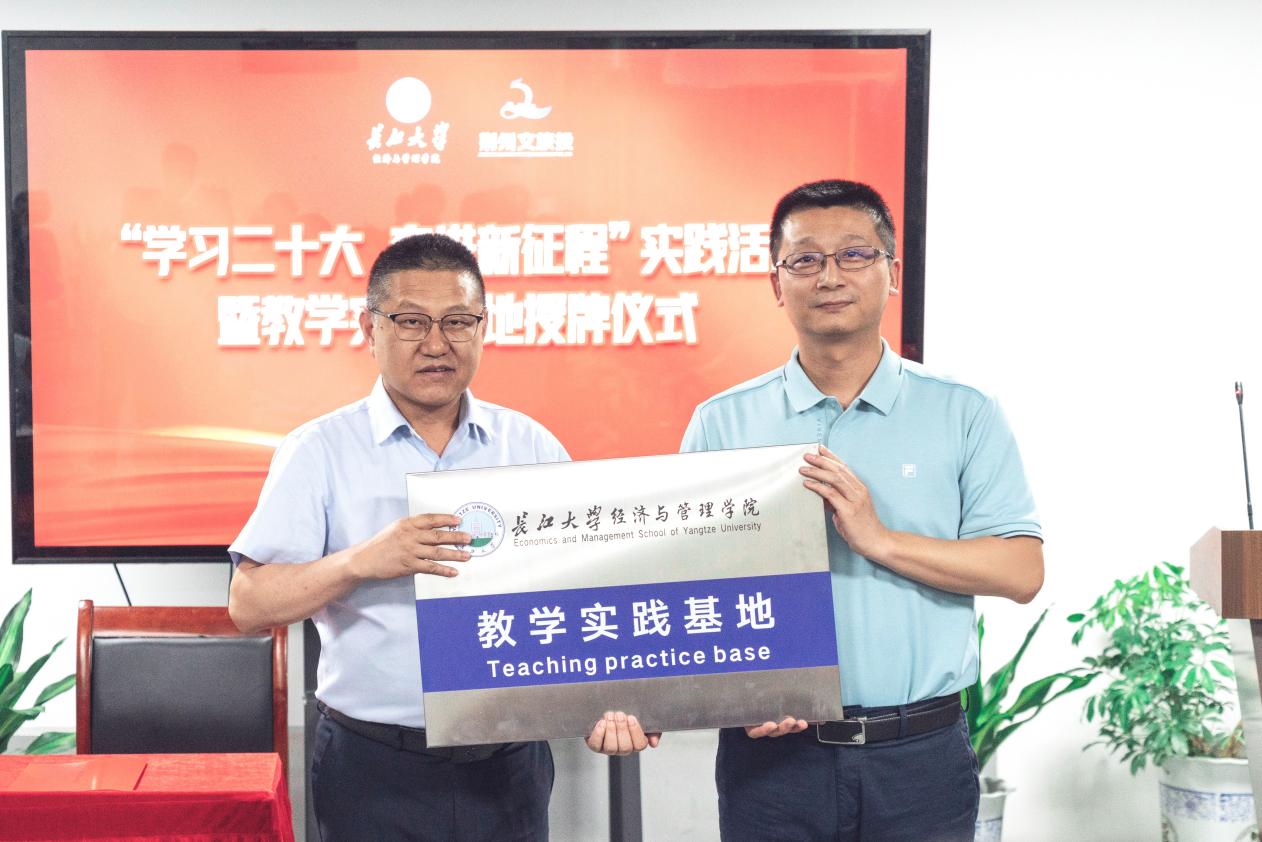 (通讯员 黄胜胜 唐丹)为提高学院本科生实践能力、提升本科人才培养质量,增进校地校企合作,yl9193永利集团与荆州文化旅游投资有限公司于2023年5月25日下午15:00在荆州市沙市区洋码头文创园会议室隆重举行实践基地授牌仪式。荆州文旅投副总经理余波,副总经理董文及荆州文旅投职能科室负责人,yl9193永利集团副院长陈承,王萍、彭德春、胡云、黄胜胜四位老师出席仪式,我院2020级市场营销专业30名学生参加授牌仪式,仪式由荆州文旅投副总经理董文主持。