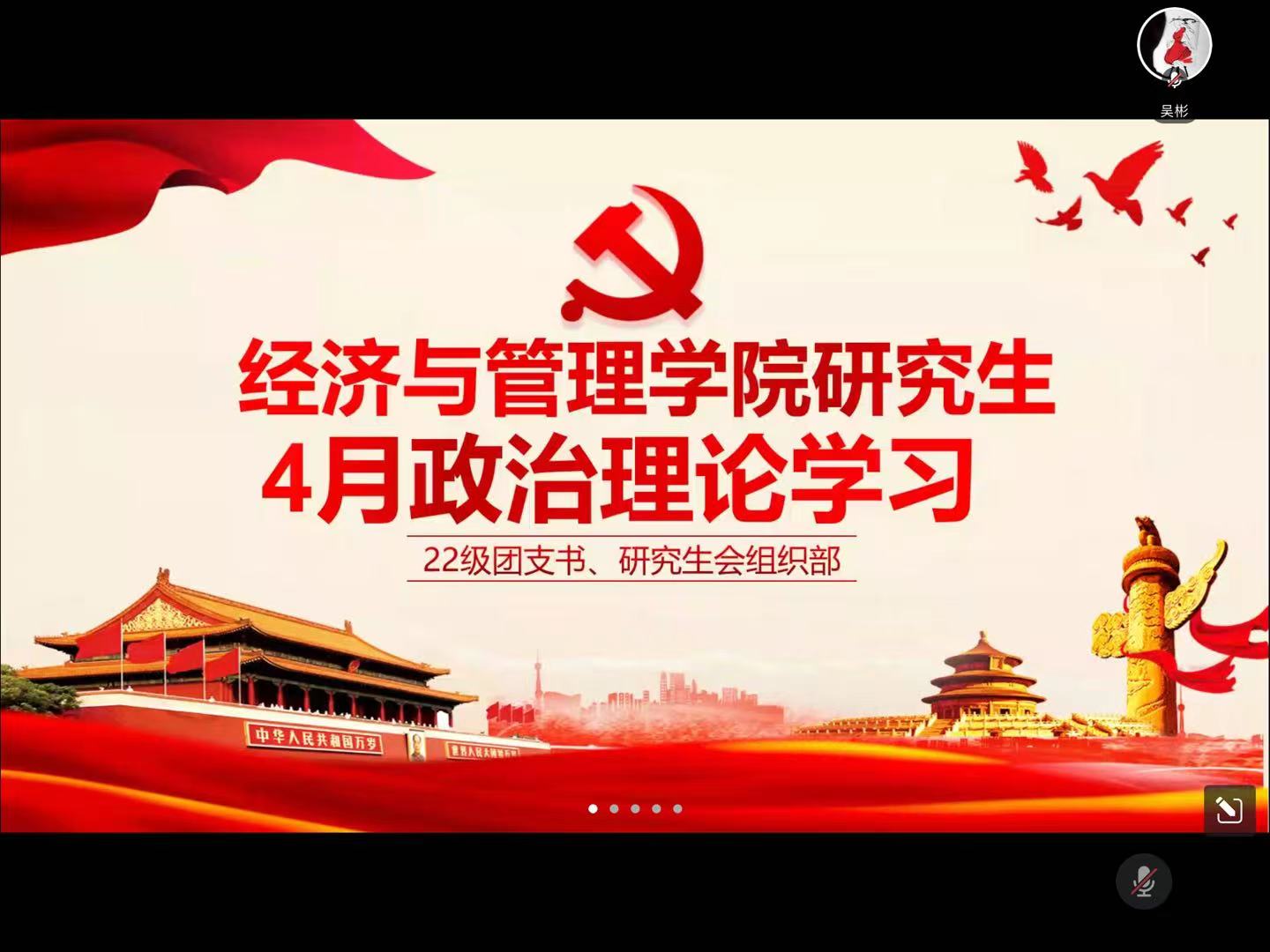 (通讯员:吴彬)为丰富研究生学习生活,加强对政治理论知识的掌握,4月20日晚7点,yl9193永利集团通过腾讯会议开展四月政治理论学习活动。本次活动由研究生会组织部及22级团支书组织,全体研究生参与活动。
