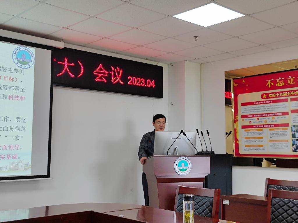 会上,何蒲明副院长以“充分发挥学院优势 主动融入乡村振兴——践行中央一号文件的经管人思考”为题讲授专题党课。他对今年中央一号文件的出台背景进行了介绍,对文件核心要点进行了解读,并紧密围绕中央一号文件的9个方面,重点阐述了长大经管人如何借助专业优势,以服务荆州、服务湖北为目标,做好新时期“三农”工作,为乡村全面振兴添砖加瓦的思考。