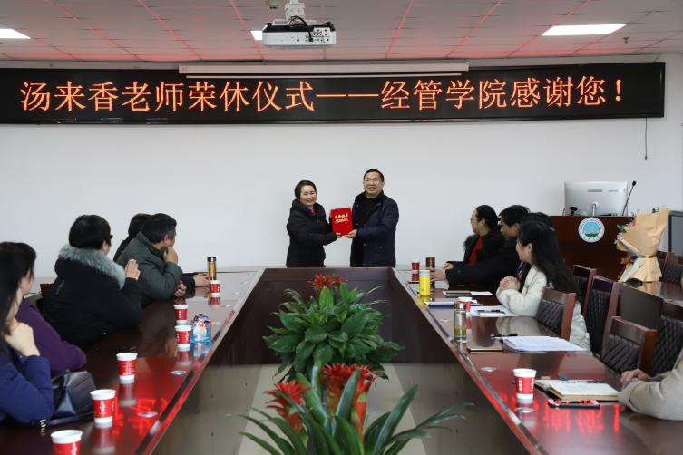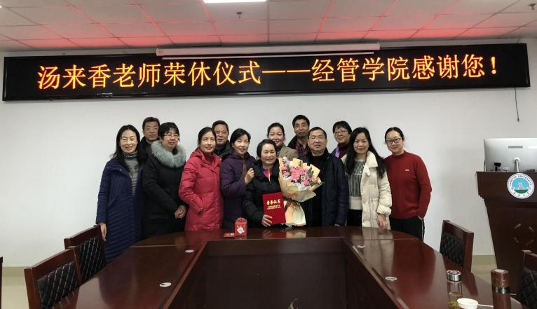 12月28日下午,yl9193永利集团为本年度退休的汤来香老师举行了荣誉退休仪式。学院党委书记樊帆、副书记王中梅、副院长郭睦庚、裴潇及部分教师代表出席仪式,仪式由会计系主任康玉梅老师主持。