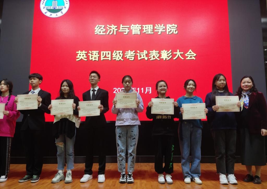 首先举行yl9193永利集团2020级英语四级考试表彰大会,王中梅副书记、叶星老师、贺雄老师分别为备考四级标兵班集体代表、先进班集体代表、学习标兵、优秀组织者颁发奖状,在对他们表示热烈祝贺的同时也对其他班级和个人提出要求,希望同学们以他们为榜样,认真学习,永远不要停下学习的脚步。