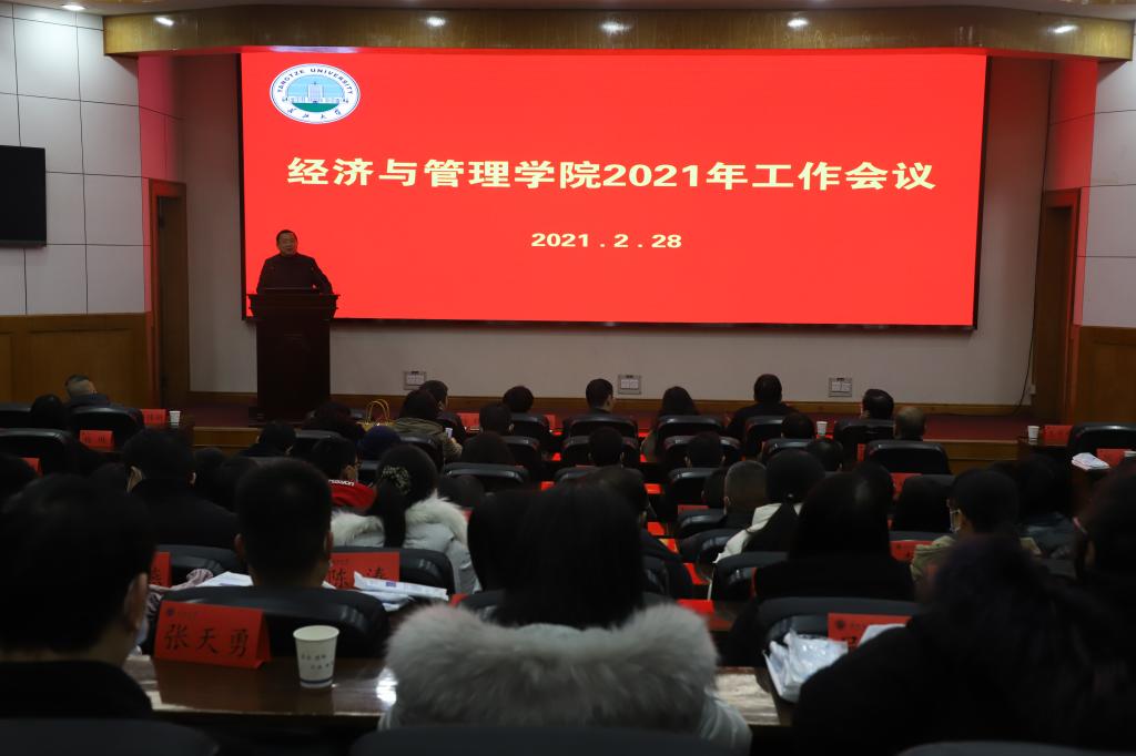 随后,徐辉院长对2020年学院各项工作进行了总结,并对学院在2020年取得的成绩给予了肯定,感谢全院教职工对学院领导班子工作的支持以及对学院发展所作出的贡献。同时徐辉院长从形势分析、指导思想、发展目标、主要任务、发展举措等5方面详细地解读了学院制定的“十四五”发展规划。他强调,2021年是“十四五”规划的开局年,学院要以习近平新时代中国特色社会主义思想为指导,深入贯彻落实习近平总书记关于教育的重要论述和全国教育大会的精神,秉持学校“三尊三学”的办学理念,以以德树人为根本,以服务地方经济发展为使命,按照“凡事三有”的原则,全面深化综合改革,不断追求进步,培养一流人才,产出一流成果,作出一流贡献,使学院总体办学水平再上新台阶。