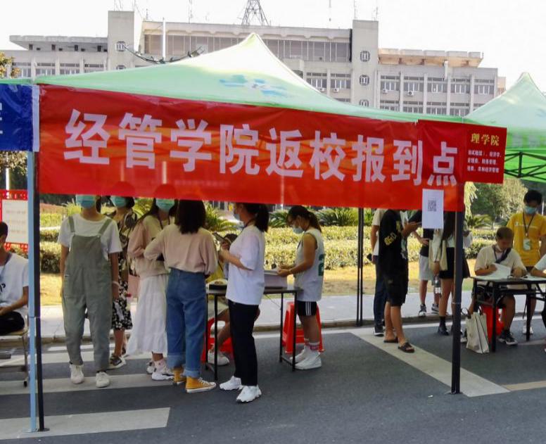 二、有序组织学生返校报到。为迎接我院近3000名老生返校学生,做好秋季学期恢复开学和学生全面返校工作,院党委副书记王中梅提前召集全体辅导员老师召开学生返校专题会议,要求志愿者精确统计学生返校行程,新疆籍学生返校做好周密安排,并在一线亲自布置精准防控安排学生返校工作,落实落细19级、18级学生宿舍调整搬迁工作。同时要求全体辅导员、班主任老师在开学第一周内走进宿舍摸排返校学生的安全心理状况,以多种形式地开展班会活动。关于学生返校报到,学院分别在东校区汉科公寓、新风公寓和西校区大门口设立了返校集中报到点,实行“一站式”报到。学生报到,需在学院报到点有序排队扫码,出示有效证件和健康码,进门测体温,完成行李消杀,办理报到注册手续。同学们分批错峰返校报到,回到阔别已久的温暖之家,吃上熟悉可口的校园饭菜,开始参与雨课堂的在线学习,更多期待恢复往日生气勃勃的校园生活。