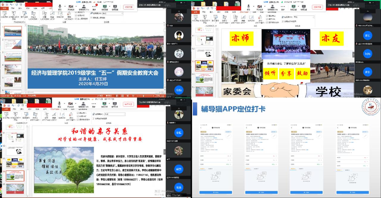 三是线上教育管理不打烊。学院向全体学生及家长公布了学院所有辅导员的电话,告知了“五一”值班情况,开辟了心理电话专线。同时,要求所有辅导员假期及疫情期间网络24小时在线,及时接受学生咨询,回应学生诉求,解决学生问题。同时,各年级召开了线上主要学生干部会议,启动了班主任线上谈心计划,各项工作有序推进。