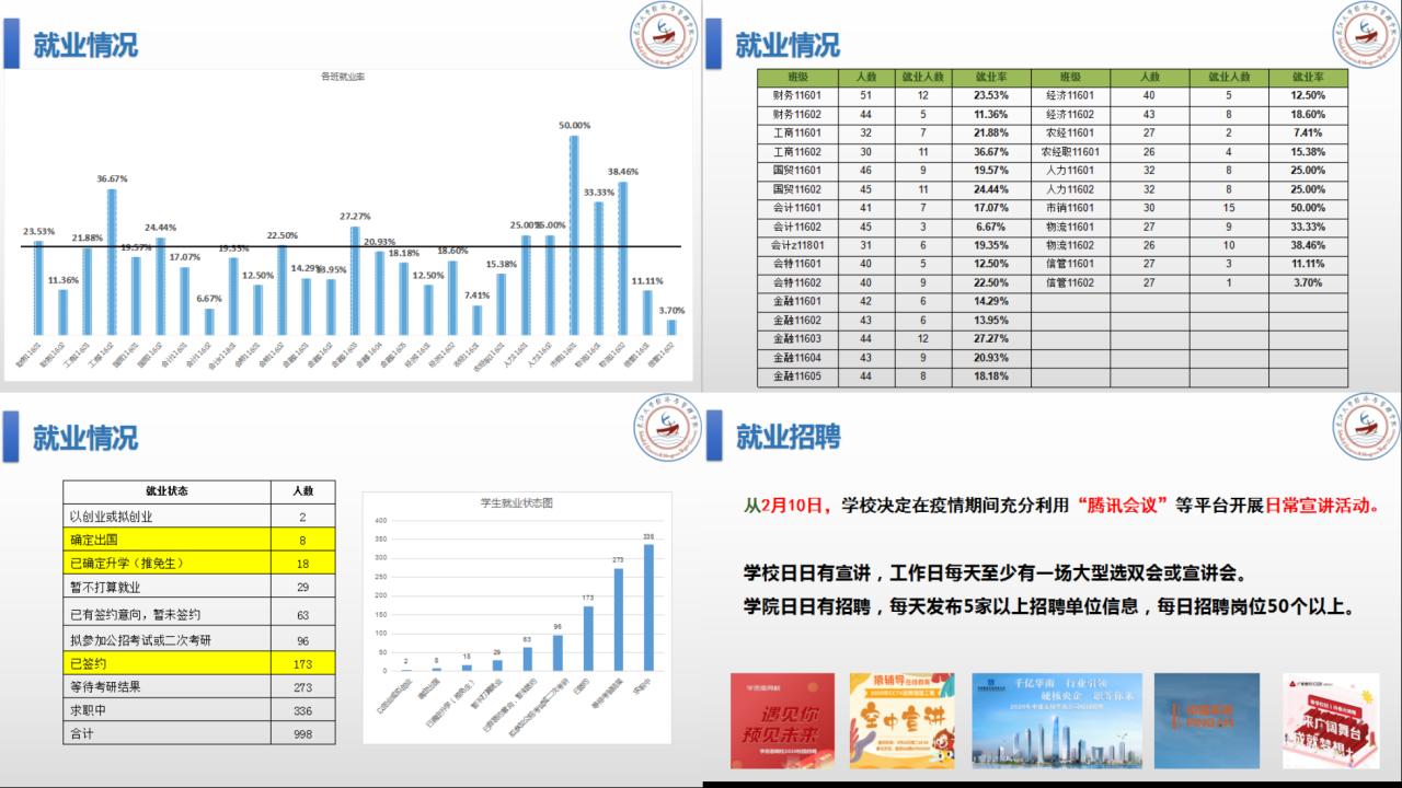 开就业班会,邀请已就业学生分享就业过程和经历,让大家了解就业的严峻性,引起大家的重视,进而加强班级就业成效。