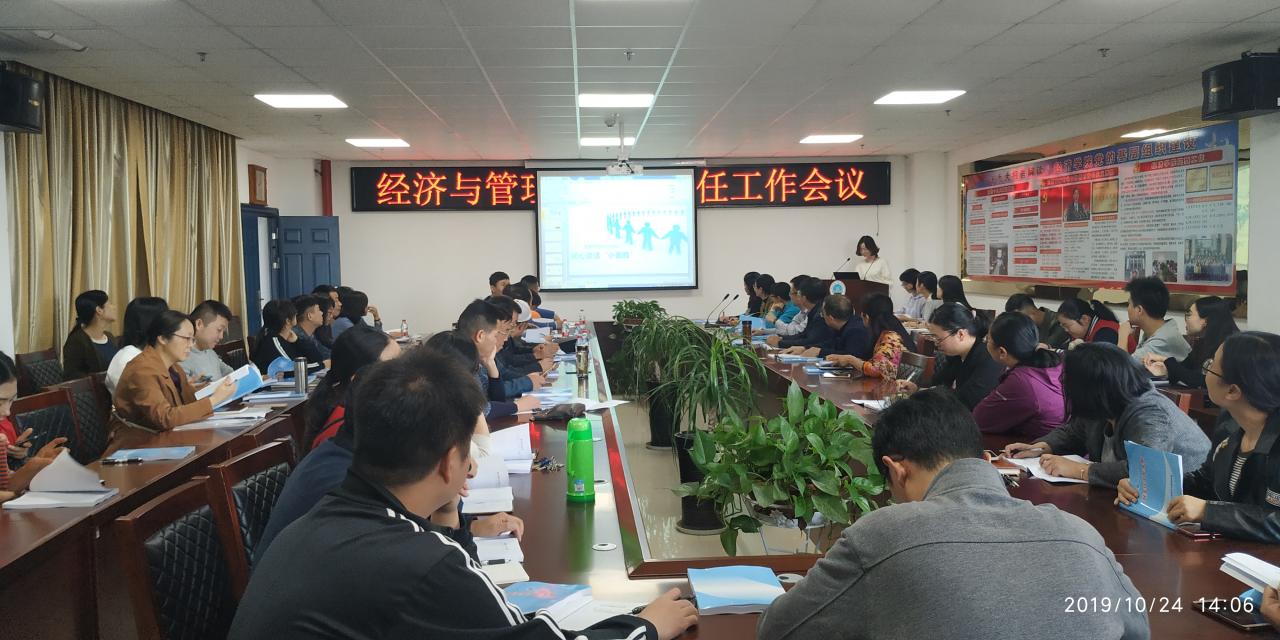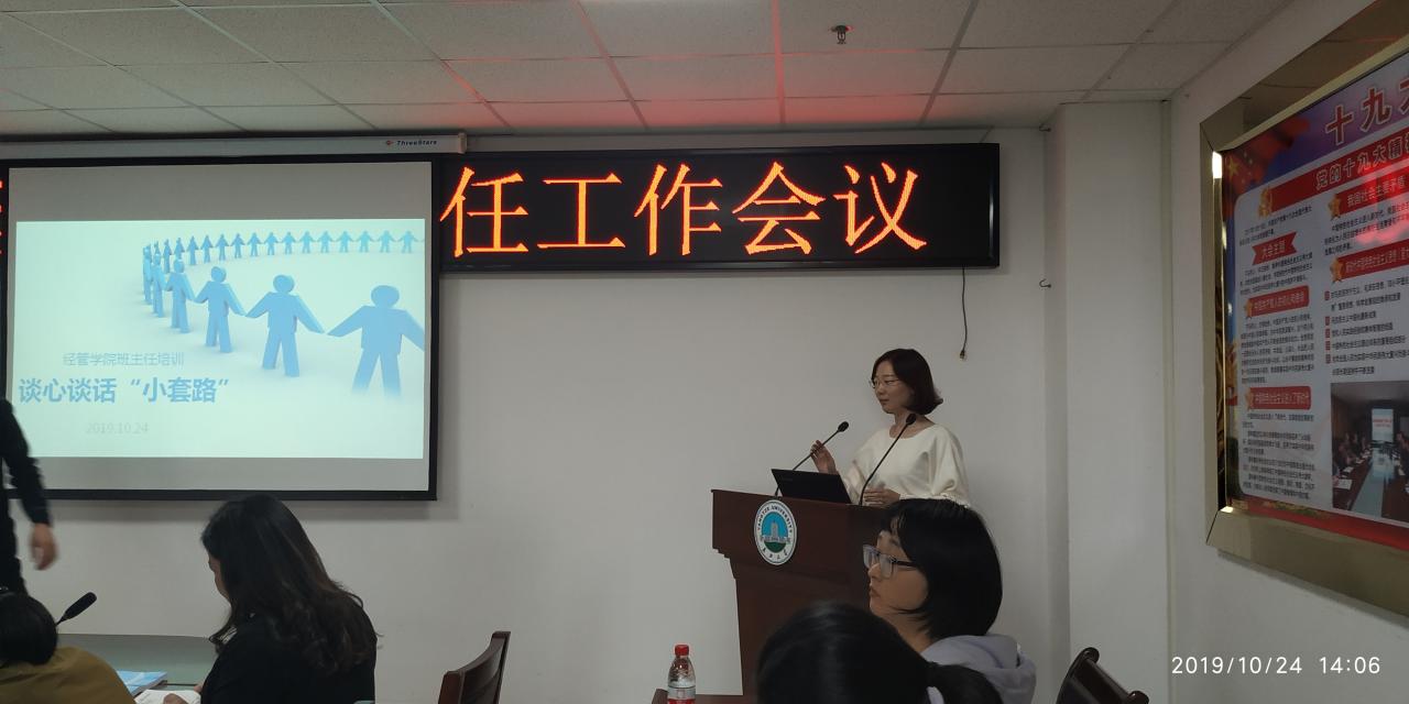10月24日下午2点,yl9193永利集团于文科楼505召开了2019年下学期班主任培训暨工作部署会议,学院党委书记樊帆、副书记王中梅、学工处心理健康教育中心易丹等出席,学院全体专兼职辅导员、班主任参加,会议由党委副书记王中梅主持。