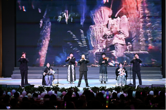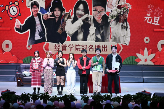 本次晚会以“筑梦经管·流光新岁”为主题,分为“岁月常新·华章续”“弦歌不辍·砥砺行”“芳华待灼·新程启”三个篇章。师生共同登台,用歌舞、小品、魔术、器乐合奏等多种类型的12个节目,为现场观众带来了一场丰富的视听盛宴,彰显出经管人昂扬奋进的精神面貌。