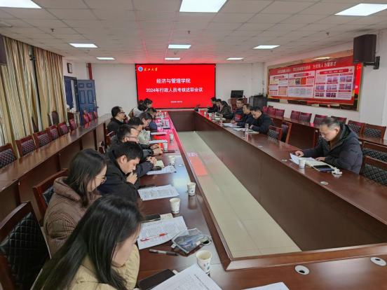 (通讯员:马晓娜)1月7日下午14:30在文科大楼505会议室召开2024年行政人员考核述职会议,学院领导班子成员和全院行政管理人员参加了会议。会议由学院党委副书记平先锋主持。