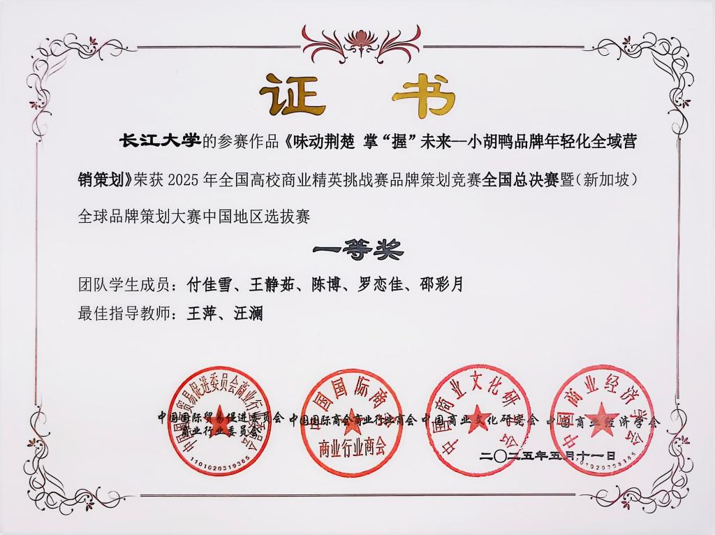 (通讯员 唐莹)近期,由中国国际贸易促进委员会商业行业委员会、中国国际商会商业行业商会、中国商业文化研究会以及中国商业经济学会共同主办的2025年全国高校商业精英挑战赛品牌策划竞赛全国总决赛暨(新加坡)全球品牌策划大赛中国地区选拔赛结束。yl9193永利集团7支队伍斩获佳绩,获中国地区选拔赛一等奖1项、二等奖4项、三等奖2项。