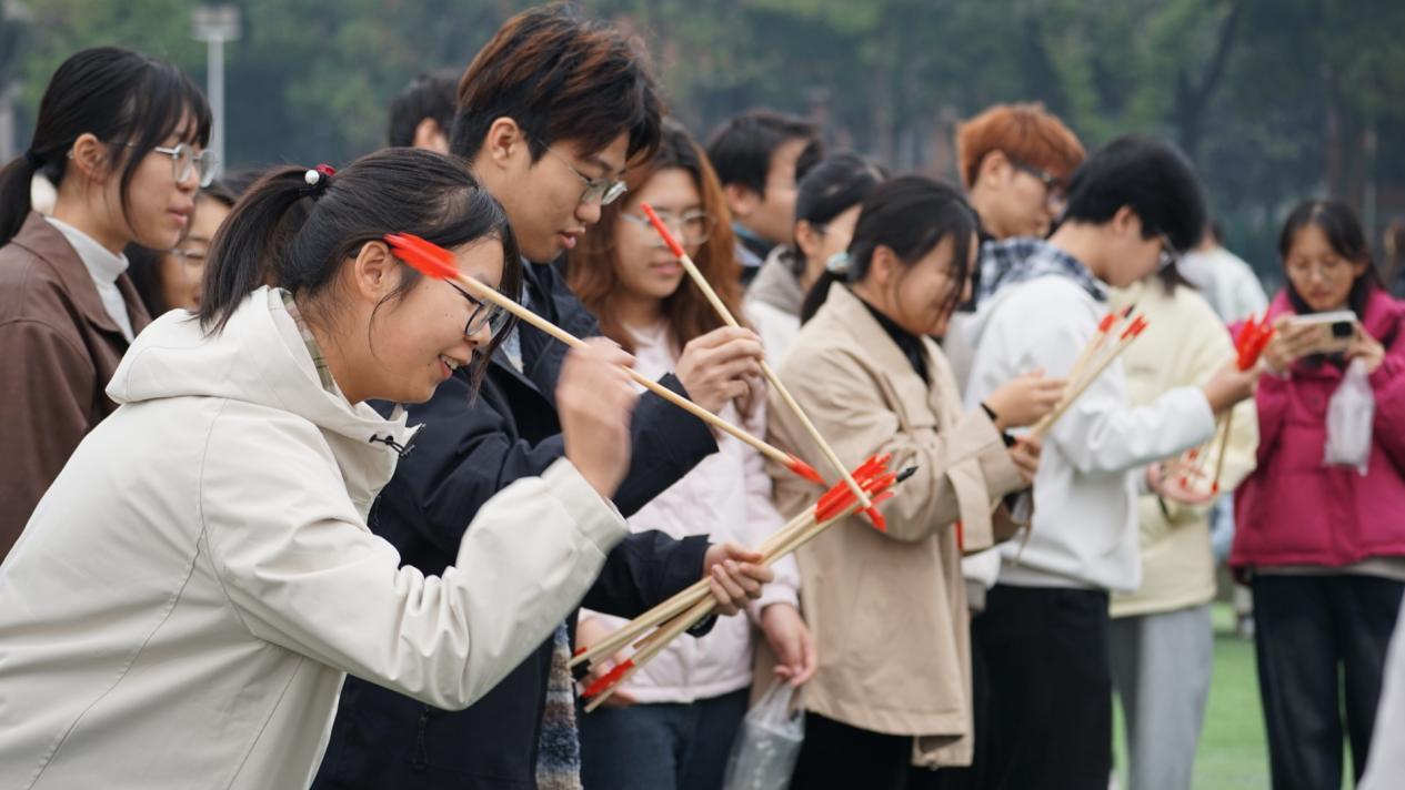 赛事环节集趣味性、协作性与竞技性于一体,现场气氛热烈、秩序井然。投壶比赛中选手凝神静气,箭矢落壶间尽显沉稳;套圈场地欢声不断,圆环飞舞中趣味盎然;呼啦圈过山车考验团队默契,队员们动作敏捷、衔接流畅;“六人小火车”项目中,队员们步调一致、口号铿锵,展现出良好的协作意识;拔河赛场气势如虹,绳缆两端的激烈角逐将全场氛围推向高潮。各项比赛精彩纷呈,充分展现经管学子朝气蓬勃、团结进取的精神风貌。