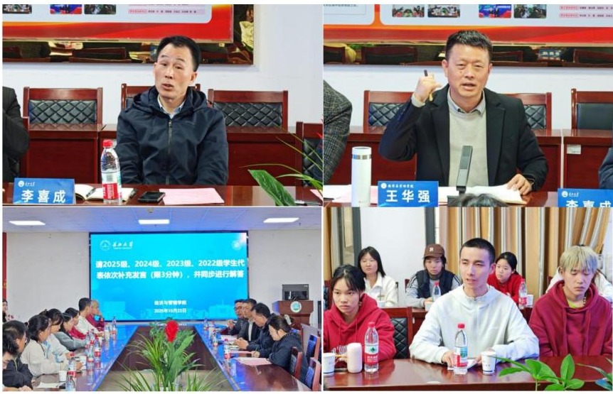 (通讯员: 雷宇)为进一步提升本科教学质量,优化教学管理服务,搭建师生沟通桥梁学院召开2025-2026学年第学期期中教学师生座谈会。会议于1023日下午2点在文科大楼505会议室进行。学院李喜成书记出席了本次会议,会议由分管本科教学的副院长王华强主持来自各个年级、不同专业的学生代表、各专业代表教师和学院教学人员参与,共同探讨了教学过程中的问题与改进措施。