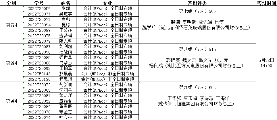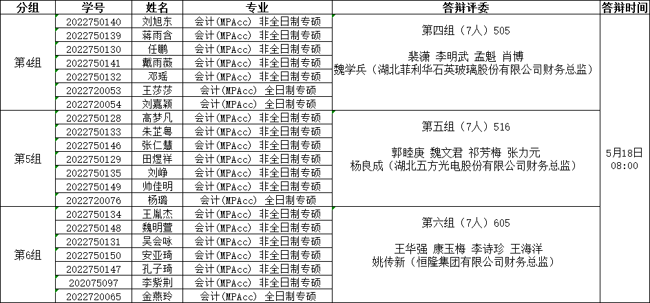 答辩小组分组安排