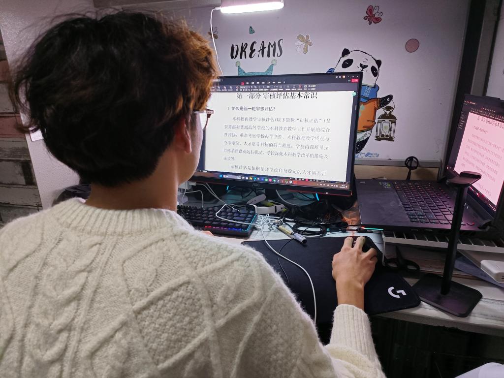 (通讯员 梁妍婧)为了迎接学校新一轮本科教育教学审核评估,营造人人关心、支持和参与的热烈氛围,全面提高学院师生对审核评估的认识和理解,以更好地推动我校教育教学质量的提升,学院组织开展了“本科教育教学审核评估应知应会手册”专题学习活动,本次活动通过专题班会、课前宣讲、宿舍走访等多种方式进行。