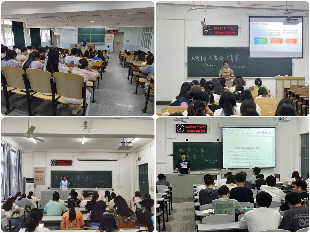 活动开展以来,我院各个年级、班级开展了线上线下、形式多样的主题班会:低年级开展了“诚信人生,奋斗青春”主题班会,高年级开展“讲诚信、懂感恩、守底线”专题资助育人专项主题教育培训会。本次诚信教育月活动内容涵盖了诚信考试、诚信学习、诚信资助、普及诚信相关法律法规、个人征信体制等知识等与大学生切身相关的各项内容,分享众多诚信立身案例。同时培养学生感恩意识,提升社会责任感;激发学生学习热情,立志做有理想、敢担当、能吃苦、肯奋斗的新时代好青年。系列主题活动同时开展了第五届“520”友善关爱节,围绕“助学 筑梦 铸人”主题,通过谈心谈话、志愿服务、选树诚信友善典型等渠道,持续建设有温度的校园,培养有理想、有本领、有担当的时代新人。
