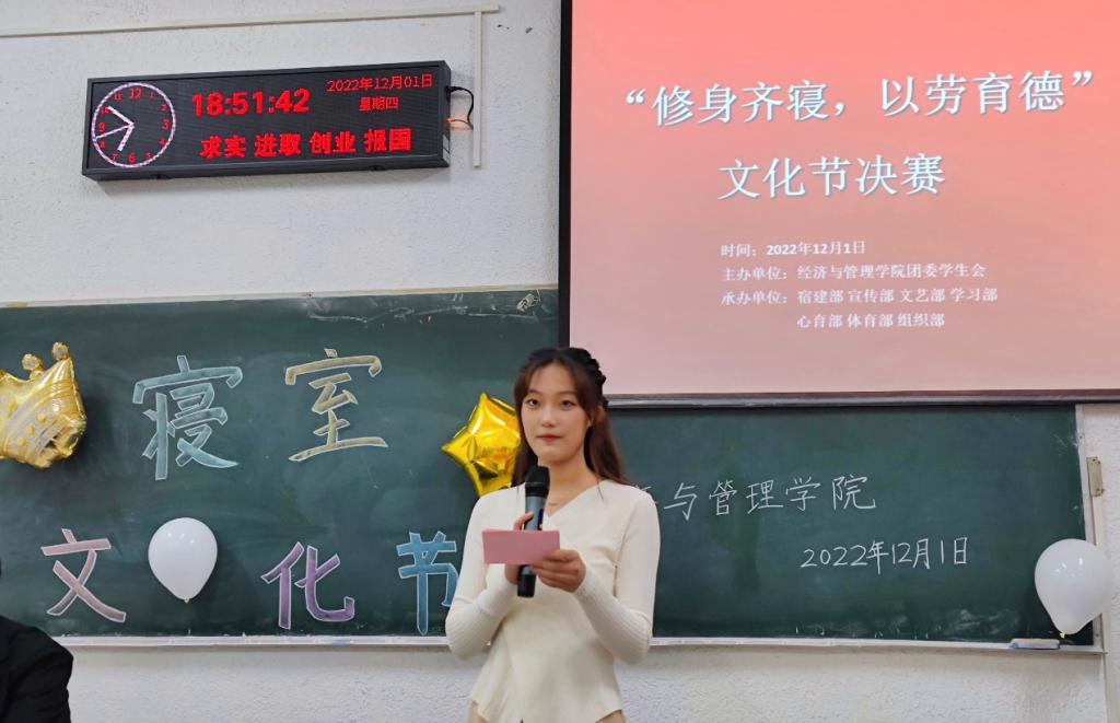(通讯员:吴亦凡)“修身齐寝,以劳育德”。12月1日晚上七点到八点半,yl9193永利集团在西校区六教502举办2022级本科生寝室风采大赛。本次活动由团委学生会宿建部主办,宣传部、学习部、文艺部等部门协办。活动评委有辅导员方含之老师、李镇老师、周学素老师以及各班宿建委员。