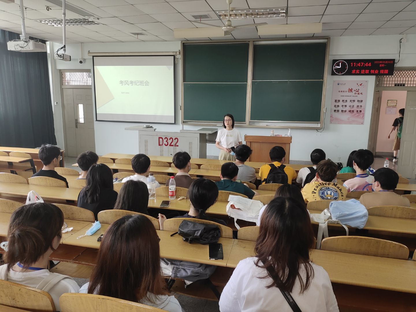 会议伊始,辅导员对学校疫情防控政策和要求进行宣讲,提醒同学们要养成健康良好的生活习惯,服从学校疫情防控的要求,严格遵守“非必要不出校、非批准不离校”的防控规定,按时参加核酸抽检。其次,通过播放安全教育微视频,进行防溺水提醒,告诫同学们珍爱生命,严禁私自外出,杜绝近水活动。期末考试和四六级考试临近,班主任要求同学们遵守考风考纪,组织同学们学习了《永利集团学生违纪处分办法》相关条例,签署了诚信考试承诺书。毕业年级辅导员对毕业生进行安全教育,提醒同学们牢记学校禁酒令相关要求,倡导全体毕业生遵守疫情防控规定,安全离校,文明离校。
