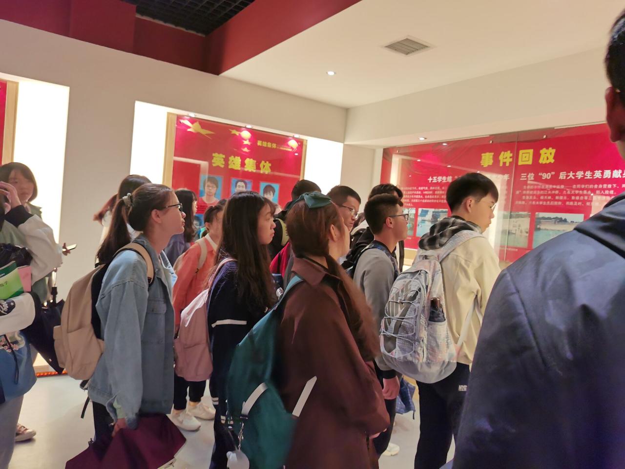纪念馆内,同学们怀着无比沉重的心情和满腔敬意,认真聆听讲解员讲述“10•24”英雄集体的生平事迹,用心感悟“10.24”精神。听着讲解员对英雄事迹的讲述,看着馆内陈列的烈士遗物,同学们不禁湿润了眼眶,陷入了对人生价值的思考,在缅怀英雄中进行了一次精神的洗礼。纪念馆内的宣传视频,也让同学们感受到生命的可贵,更加体会到生命的意义。“巍巍宝塔,湛湛荆江,生命传递,情义高尚”的精神,让同学们为之震撼与动容!