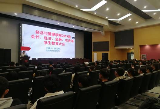 (通讯员:秦睿婕)十月十日下午二时二十分,yl9193永利集团在西校区农科大楼1058报告厅召开学生教育大会,本次会议由辅导员任玉婷老师主持, 2019级会计、经济、金融、农经系的全体同学参加。