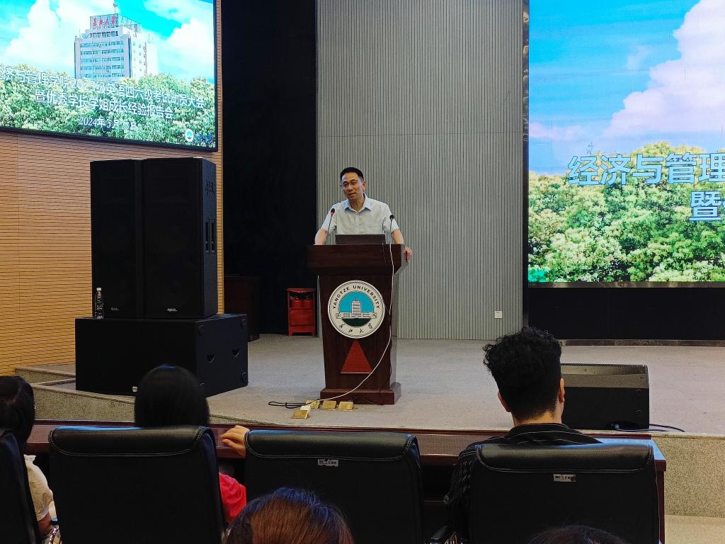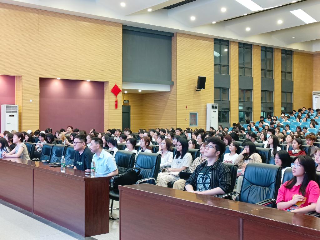 第二阶段为优秀学长学姐成长经验报告会。高年级优秀学生张美晨和彭文桦两位同学结合自己的学习经验和学习方法,和2023级全体同学做了分享交流。张美晨讲述了个人自入学以来的参赛经历,分享了自己的学习心得,尤其是在四六级考试备考方面的体会。彭文桦入选了学校本年度的“万人创百星——学干之星”,同时也是省青马班学员,他以《用奋斗谱写大学时光》为题,从加强思想认识、提升个人素养、夯实基本技能等三个方面深入阐述了自己的校园成长经历,并给同学们分享了许多工作业务上的“干货”,让同学们受益颇多。