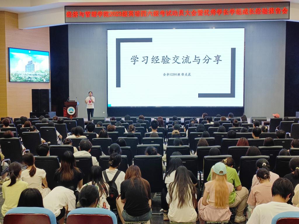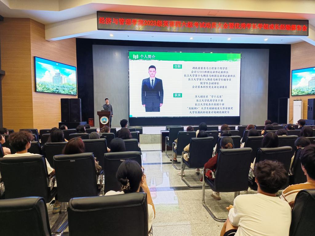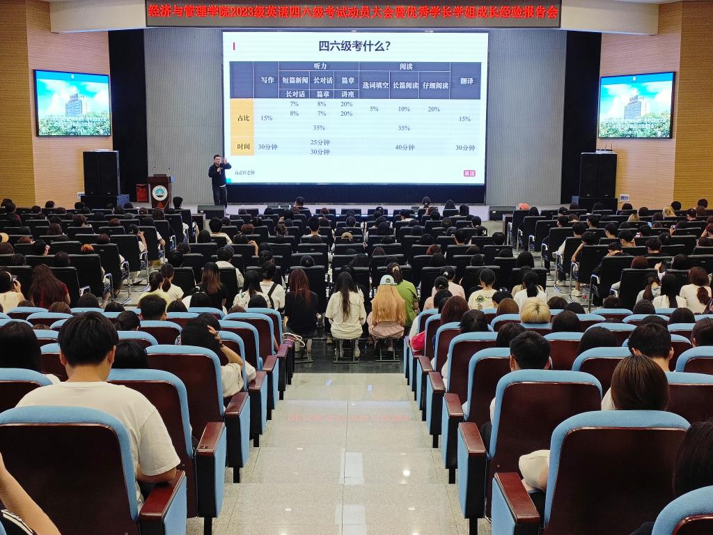 2024年上半年全国大学英语四、六级考试将于6月15日进行。为进一步做好考前辅导,帮助学生调整好备考状态,鼓足考试信心,5月13日晚上7:00,yl9193永利集团在西校区农科大楼1058报告厅举行2023级本科生英语四六级考试动员大会暨优秀学长学姐成长经验报告会。活动由2023级辅导员李镇主持,学院党委副书记平先锋、教师代表及全体学生参加。