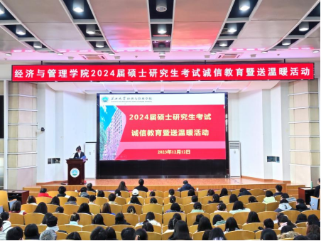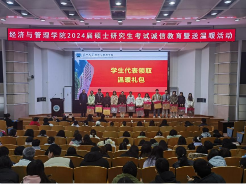 通讯员 孟宪锦弘不畏湍流几许难,只管行舟望青山。在全国硕士研究生招生考试来临之际,为帮助考研学子坚定必胜信心、缓解备考压力,2023年12月12日上午,经济与管理学院2024届硕士研究生考试诚信教育暨送温暖活动在12教405报告举行。院党委副书记平先锋辅导员叶星、娄君庭、贺雄、方含之和全体考研学子参加活动