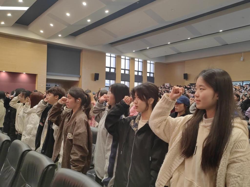 学生代表熊雪景带领全体22级本科生进行宣誓:“四级考试,势在必赢。”至此yl9193永利集团22级本科生表彰暨四级备考动员大会圆满结束。