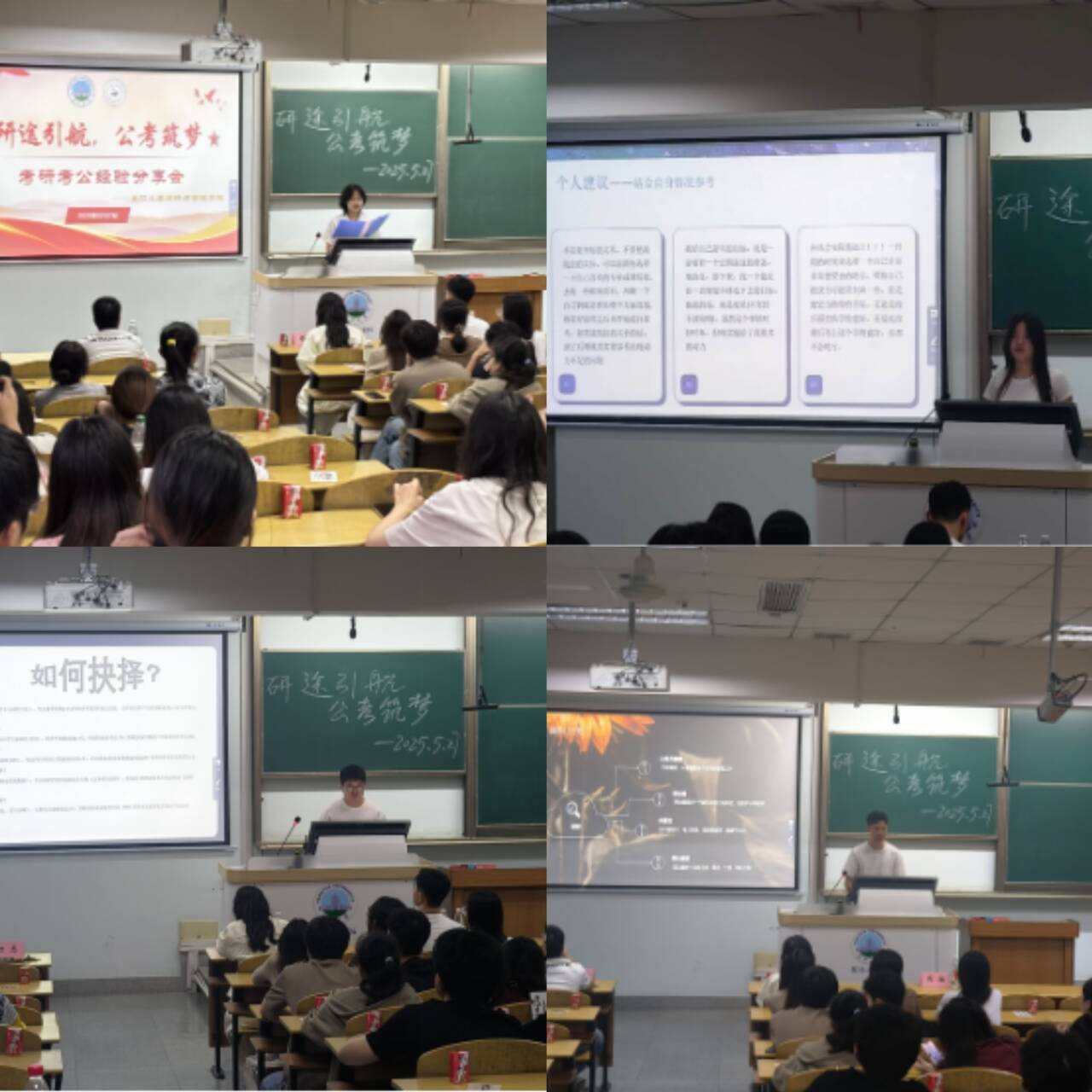 三位嘉宾分享结束后,同学们围绕“专业课与公共课时间分配”、“复试与面试准备要点”、“备考过程中的心理调适”、“不同岗位报考策略”等具体问题踊跃提问,学长学姐们结合自身经历,耐心细致地一一解答,现场气氛热烈。