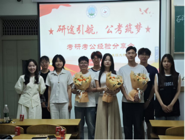 在考研经验分享环节,考取西北农林科技大学的陈晋晋同学,结合自身“从犹豫到坚定”的心路历程,详细分享了备考策略、时间管理及心态调整方法,鼓励学弟学妹们坚定目标,持之以恒。考取中共广东省委党校的柯志同学分享了他的考研心得。他着重介绍了目标院校选择、专业课复习规划以及应试技巧,其清晰的思路和实用的建议令在场同学深受启发。