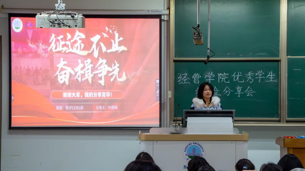 分享会邀请了2022级熊雪景与2023级叶雨晴两位同学担任主讲。熊雪景结合自身在学术科研与学科竞赛中的经验,系统分享了高效学习方法与项目实践心得,强调夯实基础与主动探索的重要性。叶雨晴则从学生干部视角出发,介绍了如何平衡课程学习、社会实践与工作任务,其清晰的规划与务实态度给在场同学留下深刻印象。在随后的互动环节,同学们踊跃提问,两位分享者结合自身体会给予了细致解答。最后,辅导员叶星老师进行总结,勉励同学们找准方向、不懈奋斗。