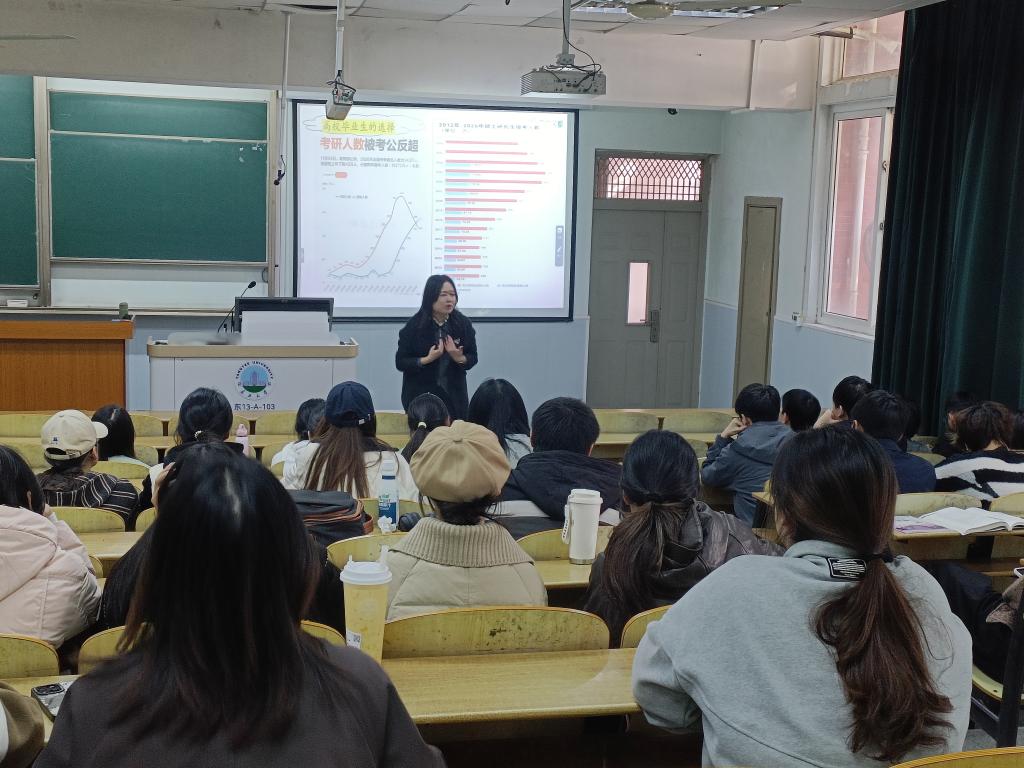 (通讯员 李镇)为帮助2023级本科生系统了解考研政策、明确备考方向、提升复习效率,学院于11月27日在东校区13教A103室成功举办考研专题指导讲座。本次讲座特邀湖北文都考研资深讲师胡秀琴担任主讲。