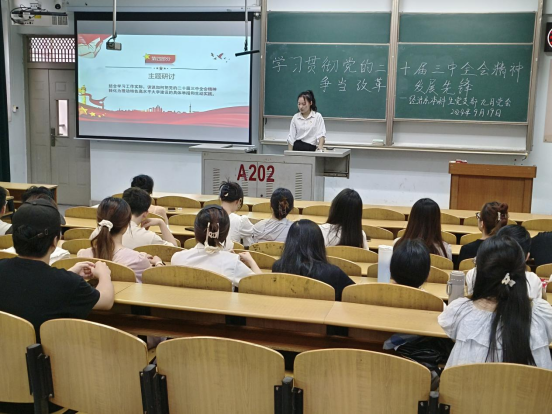 (通讯员 严允焓)学习贯彻党的二十届三中全会精神,争当改革发展先锋。2024年9月19日,经济系本科生党支部在东校区13教A202召开九月主题党日活动。活动由党支部支委郝颖丽主持。