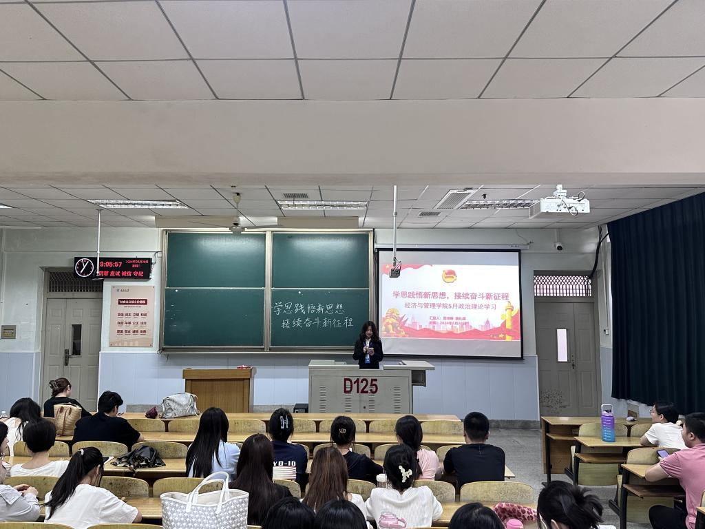 (通讯员 郑婉君)为深入学习贯彻习近平新时代中国特色社会主义思想,进一步增强“四个意识”、坚定“四个自信”、做到“两个维护”,提升我院研究生政治理论素养,深刻认识和准确把握党的二十大重大主题、重大理论观点、重大战略思想,2024年5月28日19:00,yl9193永利集团在13教D-125教室开展了研究生五月政治理论学习。本次学习以“学思践悟新思想,接续奋斗新征程”为主题,由我院2023级研究生章诗琳和唐礼蝶同学担任主讲人,全体2023级研究生到场参会。