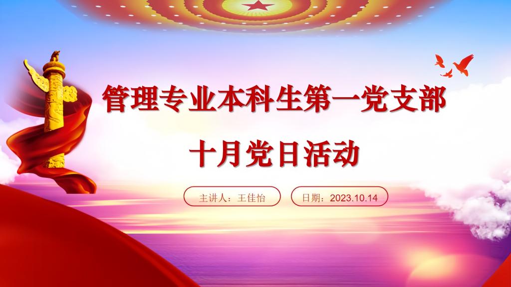 (通讯员:陈奕铭/文 胡若兰/摄)忆初心,强党性。为深入贯彻学习习近平总书记关于国家建设的新思想、新观点、新论断,全面系统领会其深刻内涵和实践要求,引领学生党员不忘初心,踔厉奋发,勇毅前行,将其贯彻落实到日常学习生活实际,管理专业本科生第一党支部于2023年10月14日在文科大楼505召开“学习重要讲话,领悟校园新风尚”主题党日活动。支部2020级、2021级全体党员同志参加活动。