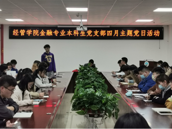 (通讯员:贾溢)2021年4月10日晚上七点,yl9193永利集团金融专业本科生党支部在文科楼505召开4月主题党日会议暨2021年上半年党员发展预审大会,支部书记黄承石主持会议,支部党员和全体发展对象参加会议。