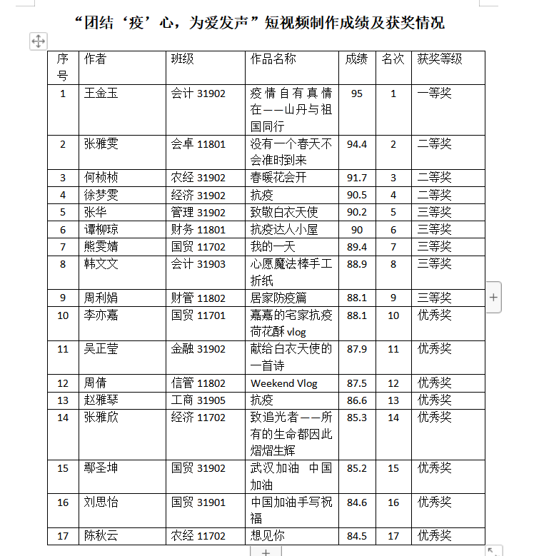 同学们的视频作品内容丰富,感情饱满,主题鲜明,表现了我院学子良好的价值观与社会责任感。据了解,“团结‘疫’心,为爱发声”线上主题活动的开展时间为3月19日至4月10日,历时23天。在同学们的积极参与下,心育部官Q自活动开始后点赞数达1300余次;“心愿墙”截止3月30日,共收到投稿数63篇,经筛选推送39篇;“短视频制作”活动截止4月10日,共收到73件作品,经评选有17件获奖,学院团委学生会官Q新增浏览量达10670次。