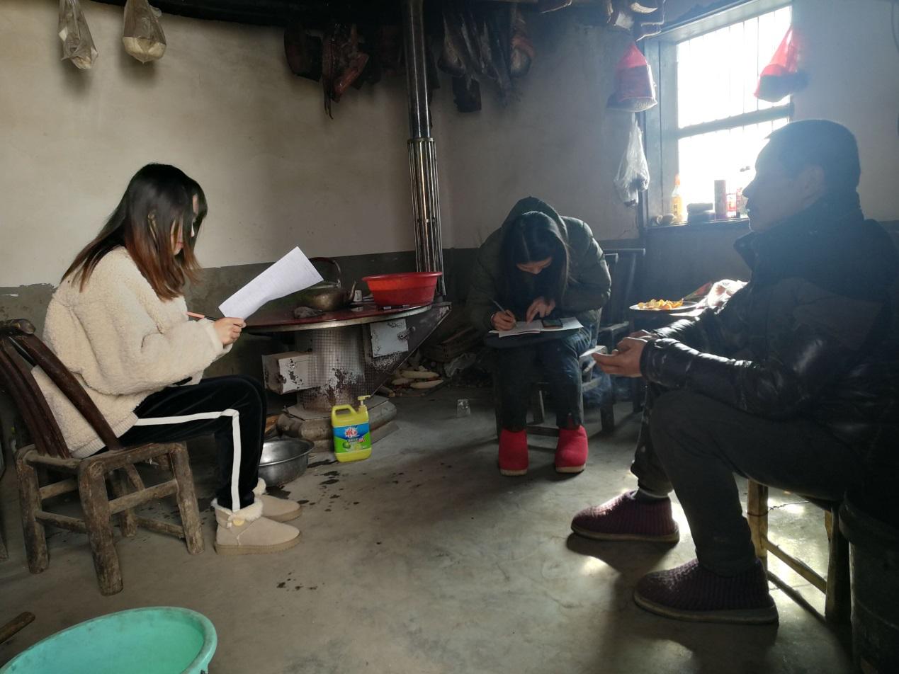 12月7日至12月8日,志愿者们跟随郑家埫村村委会的工作人员们进行走访调查,到接受了精准扶贫帮助的村民家中,了解他们目前的生活状况。其中,志愿者们来到一对高龄老人家中,当时两位老人仍然干着农活,为生计忙碌,志愿者们了解到两位老人的子女均在外务工,回家次数屈指可数。此外,志愿者们还了解到一位住在山顶处腿脚不便的村民,他的妻子去世多年,独自一人维持家庭生活。他们都表示了对国家精准扶贫工作的认可。尽管生活条件困难,但在国家的帮助下,他们对生活仍充满希望,想通过努力摆脱贫困。
