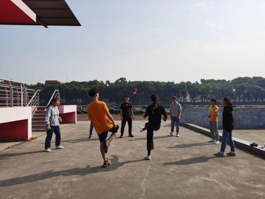 为吸引更多同学参与到体育活动中,学院还安排了跳大绳和踢毽子等体育项目。同学们在观赛、加油之余,还可以通过参加踢毽子等体育项目赢取小零食。同学们踊跃参与,现场随机组队进行PK,活动气氛热烈。