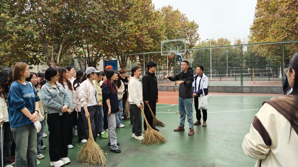 叶星对此次劳动教育活动的清扫范围作出了具体分工,志愿者们有序分配好劳动工具,根据安排从排球场到篮球场逐步推进。