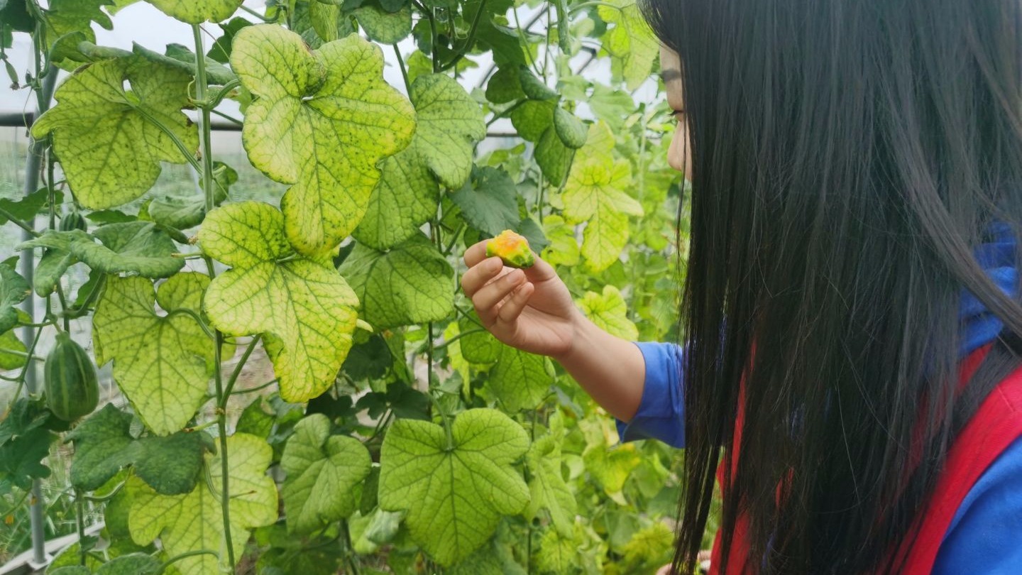 在调查与实践的过程中,团队成员走遍了农场所有的田地,近距离考察了农场以羊角蜜甜瓜、无花果为代表的应季农产品。“真的又甜又新鲜”成员胡星怡在野地品尝过瓜果后有所回味,“这些果蔬都是纯天然的,完全符合市面上所宣传的有机农产品的条件,可是销量没有达到理想状态,我认为还需要进一步探索相关问题。”