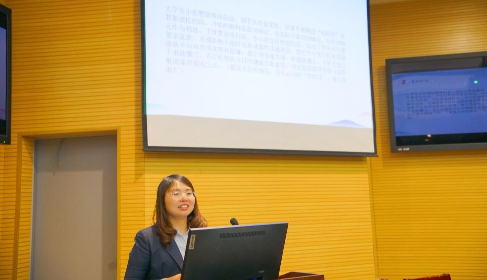 讲座中,闵娇讲师结合当前金融诈骗新形势,以"电信诈骗防范"、"校园贷风险警示"、"新型金融骗局识别"三大模块为主线,通过剖析匿名快递诈骗、AI换脸诈骗等典型案例,深入揭露犯罪分子的作案手法和心理操控技巧。针对校园贷陷阱,她重点讲解了高利贷背后的利滚利机制、个人信息泄露风险,并通过情景模拟、互动问答等形式,引导同学们识破"低门槛放款"、"注销校园贷"等常见话术套路。现场学生踊跃参与案例讨论,在问答环节中积极回答问题。