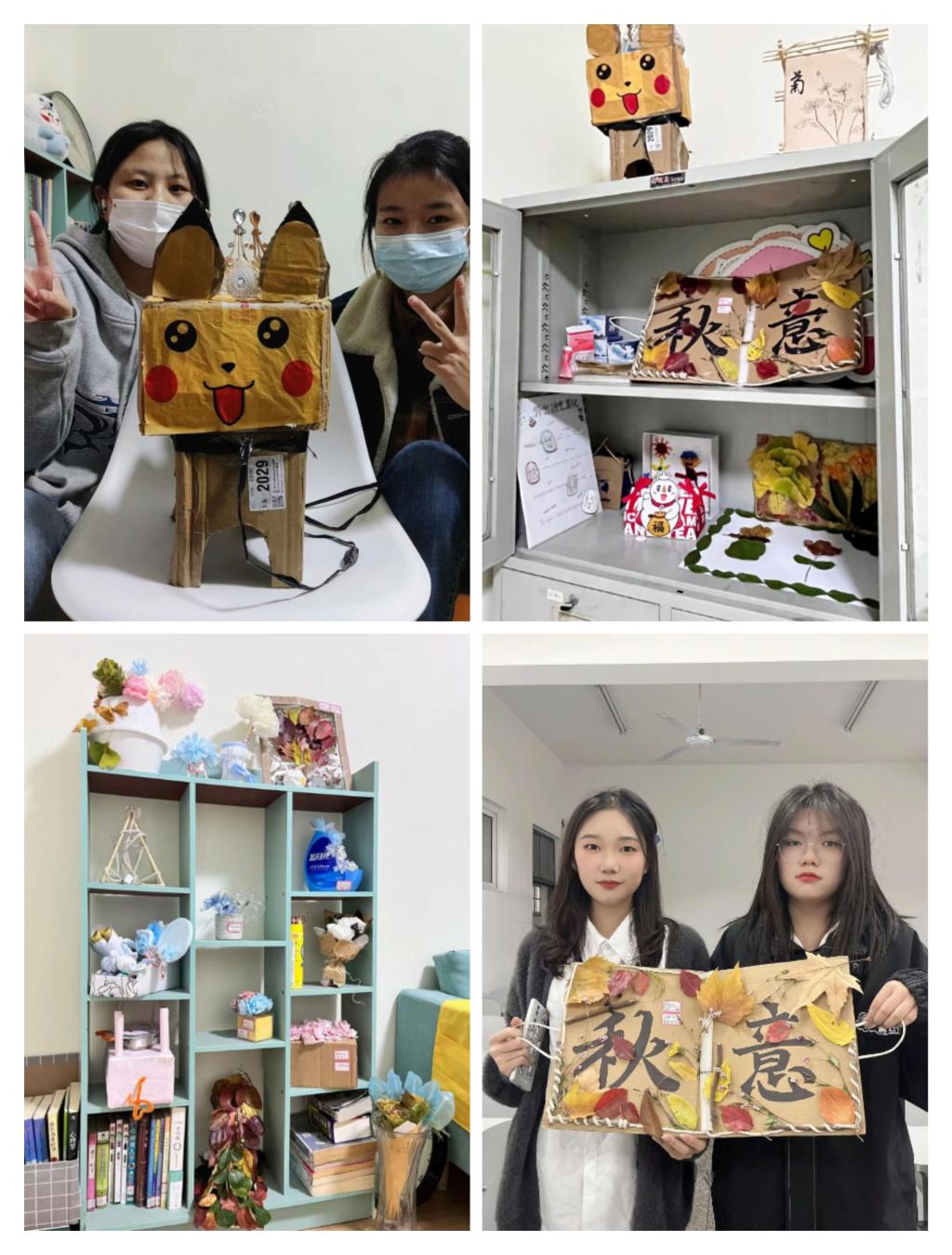 晚上7点,活动圆满结束。心育部成员将两个校区的作品分别汇总,整理后摆放在心育活动室内,计划将于后期举办一次作品展。