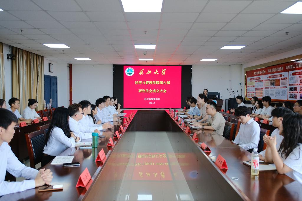 (通讯员:谢薇/文 王玮娜/图)秋风送爽,筑梦启航!9月20日,为进一步加强学院研究生管理,完善研究生工作体制,充分发挥研究生学生干部在学院与广大青年学生之间的桥梁纽带作用,更好地为全院师生服务,yl9193永利集团2024-2025学年研究生会成立大会在文科大楼505顺利举行,学院党委副书记平先锋老师、团委书记杨雪老师、研究生辅导员任玉婷老师、研究生辅导员贺雄老师、辅导员方含之老师以及经管学院研究生会全体成员参加。会议由研究生会曹雪玲主持。