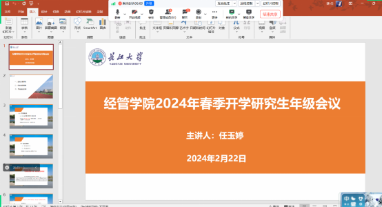 (通讯员 任玉婷)为做好2024年春季学期学生开学安全教育工作,确保新学期各项工作有序开展,我院于2月22日上午,通过线上方式召开研究生年级会议。会议由辅导员任玉婷主持,学院全体研究生参加。