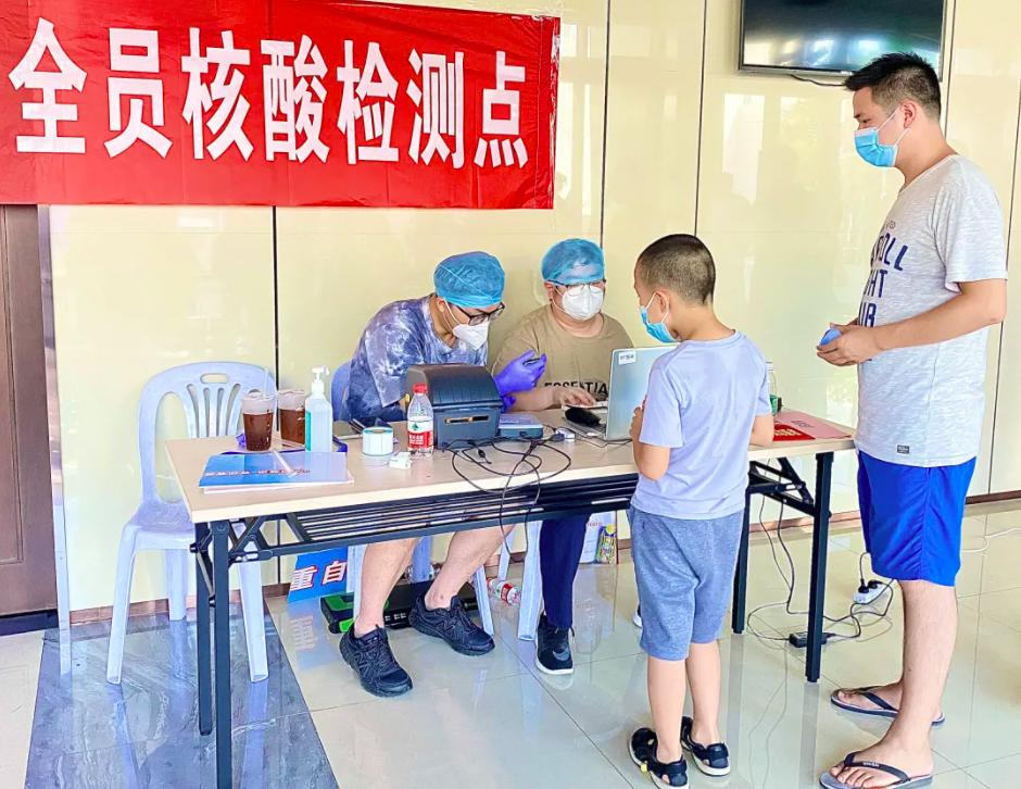母子二人在这样的场合相遇,顾不上相互叮嘱,相视一笑,又继续工作,在不同的岗位默默为全民核酸检测工作做出自己的贡献。