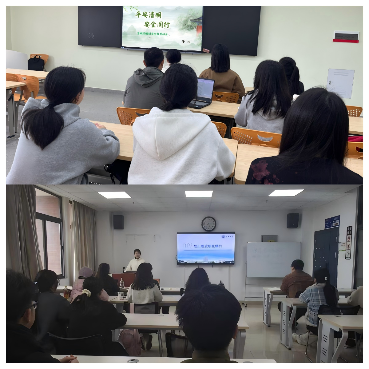 此次班会围绕“吃、住、行、盗、火、水、毒、艾、恐、坛、心、网”十二个重点安全领域,向同学们进行了全面细致的讲解与提醒。针对外出实习、返乡祭扫等特殊情况作出统一规范说明,对清明节祭扫期间的防火安全及春季传染病防控进行了重点强调提醒同学们提前履行请假或报备手续,合理规划行程,确保假期有序可控。